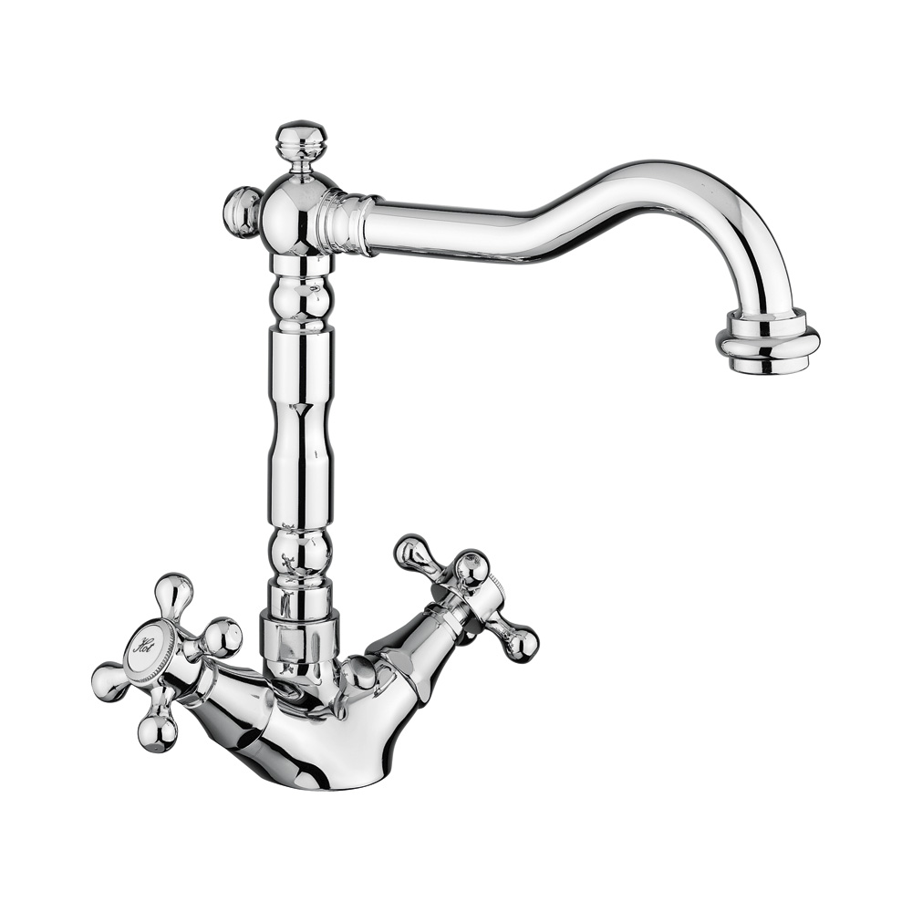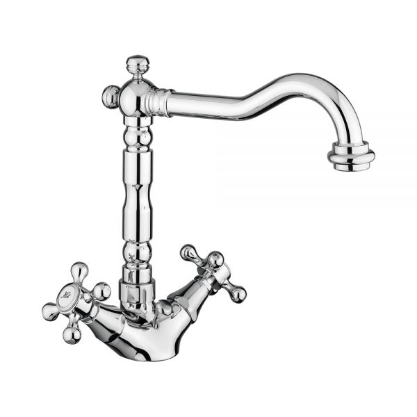 One-hole basin mixer old style spout, with pop-up waste