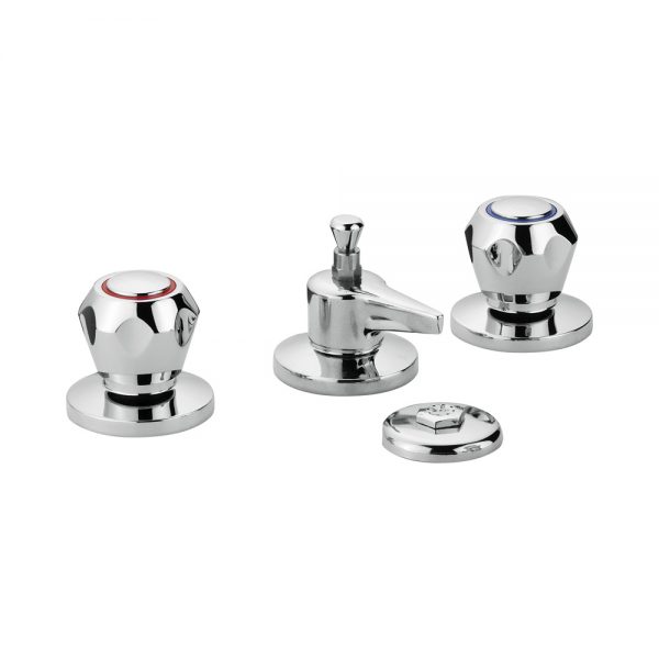 Three holes bidet mixer with shower and pop-up waste