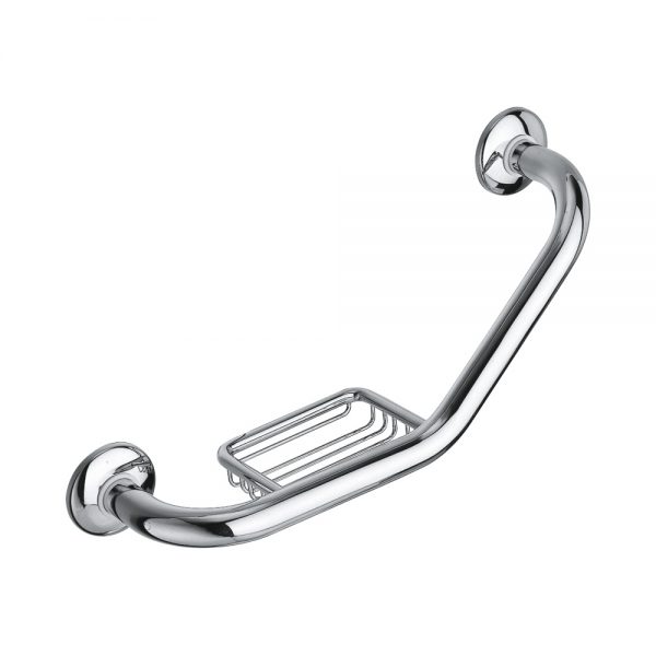 Bath grab bar with soap holder