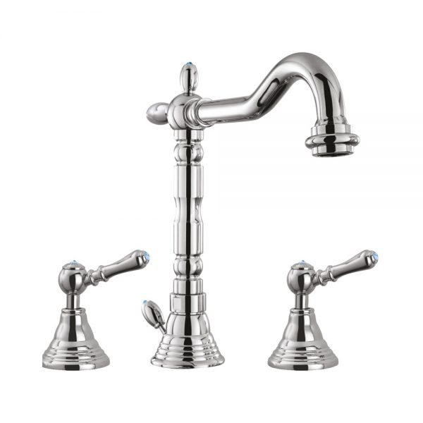 Three holes basin mixer old style spout, with pop-up waste